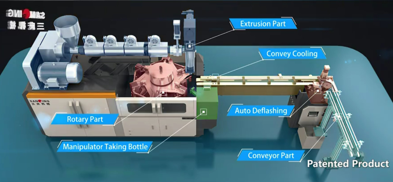 تقوم شركتنا بتصنيع آلة التشكيل بالنفخ الدوارة الجديدة لزجاجات 3 لتر.هذه الآلة ذات كفاءة عالية ، يمكن أن تساوي قدرة إنتاج 3 آلات نفخ تقليدية.ومع ذلك ، فإن استهلاك الطاقة يساوي فقط 30٪ من الآلة التقليدية التي تعمل بالطاقة الهيدروليكية.المساهمة تأتي من المحرك المؤازر الذي تبنته هذه الآلة ، والذي يمكن أن يساعد في توفير الكهرباء من أجل تقليل تكلفة الإنتاج.