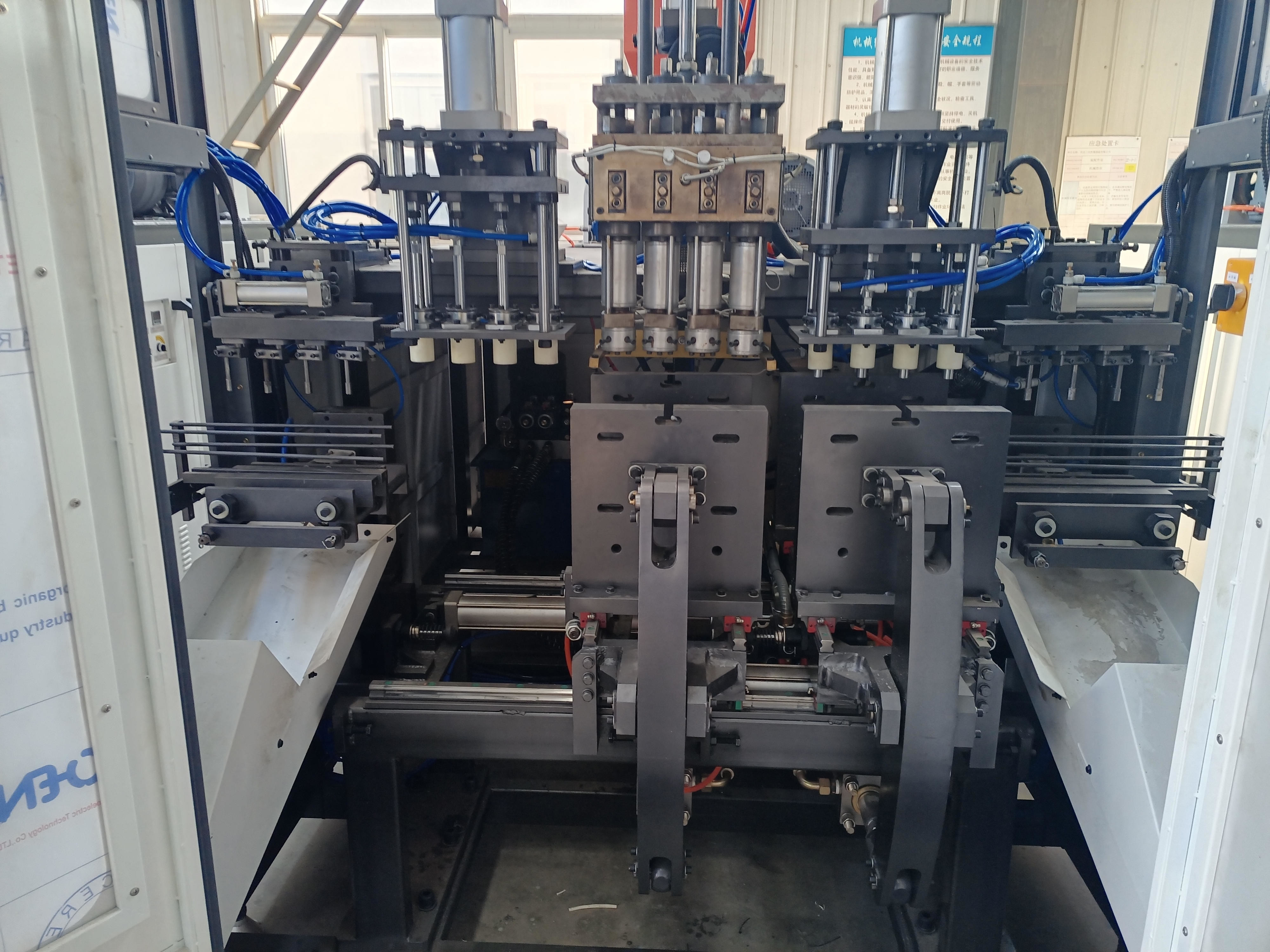 هذه الآلة عبارة عن نظام هيدروليكي لإغلاق القوالب ونظام هوائي لتحريك القوالب.كما أن لديها خزانة كهربائية غير متصلة ، تحكم كمبيوتر PLC ، سهل التشغيل.انتهى هذا الجهاز أيضًا من المنتج وجردتتلقائيا ، لا حاجة للناس.